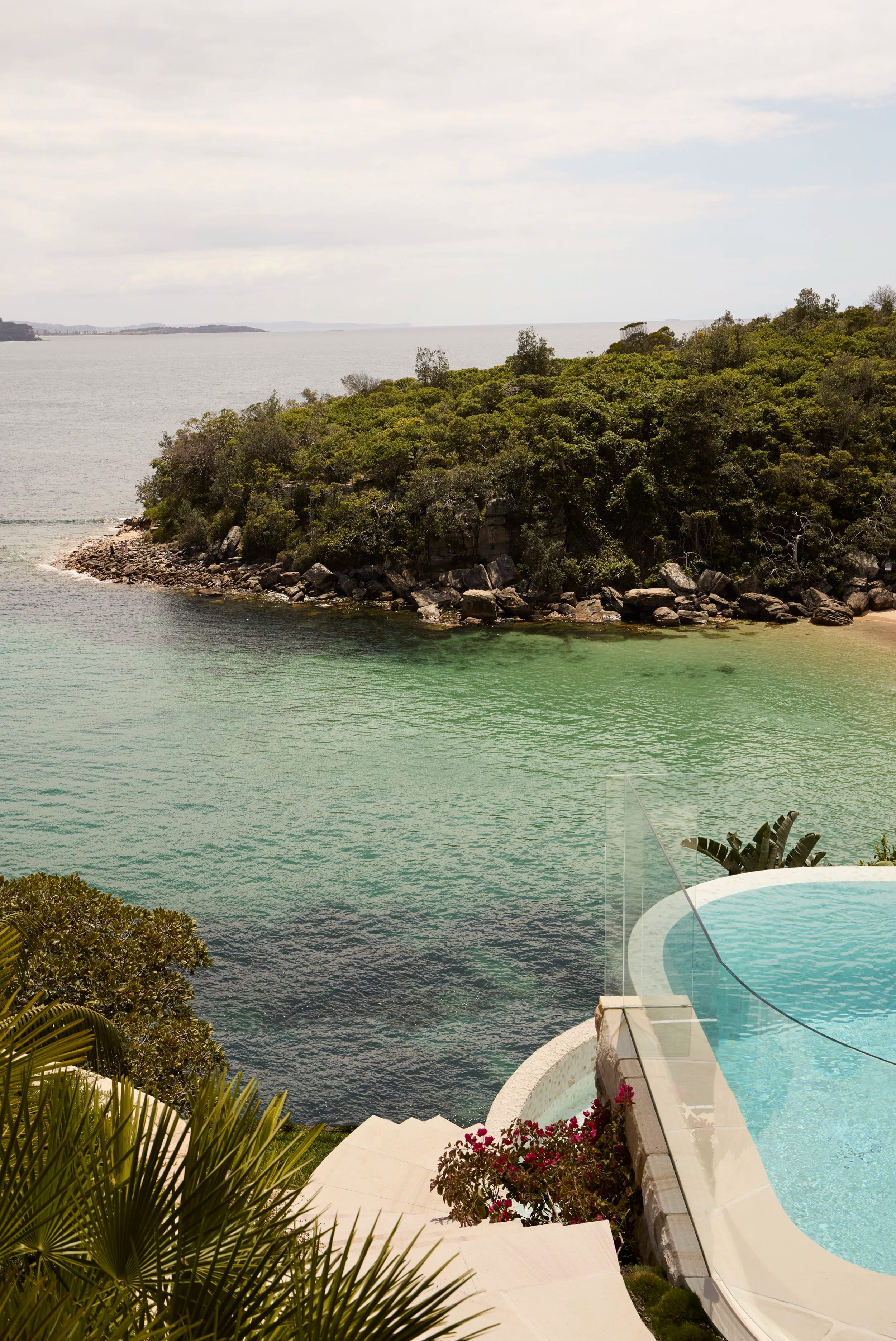 Perched on Manly’s Shelly Beach cliffs, Shell House blends curves and lines echoing the bay. Stone and glass soften its form, while sandy tones and ocean blues define interiors. A 12-metre glazed façade frames sea views, and three levels unified by bronze details create a cinematic experience of floating above the coastline.