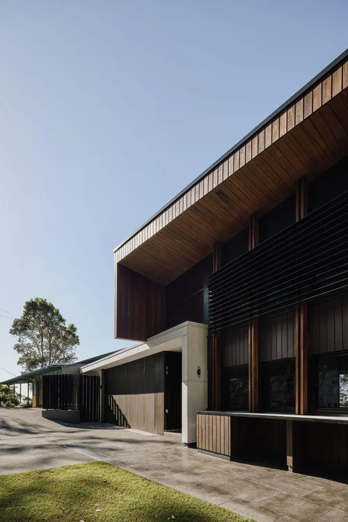 Located on a southern Gold Coast headland, this two storey residence was designed around a 25m competition two lane lap pool which was positioned on the lower level to take advantage of views over the treetops to the surf beach below.